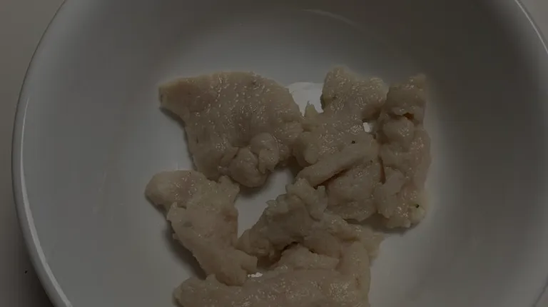 I bought a chicken and vegetables platter at China Garden and this is the chicken they gave me. It looks pale white and had a texture like rubber. Disgusting.