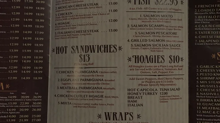 Hidden gem in south Philly in the food tour portion of my wrestle mania weekend. Staff great. Enjoyed the variety of options. Counter service and a table a few bar chairs for dining. The Nashville hot chicken fries were loaded and good value. Their signature hoagie had chicken cutlet, vodka sauce, pesto, and burrata which was a fantastic combo. My only minor feedback I is that it was so heavily loaded with sauce that it took away any crunchy element on the bite. Bacon or some alternative would be good topping as the bread was amazingly soft.