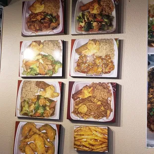 a variety of food items displayed on a wall