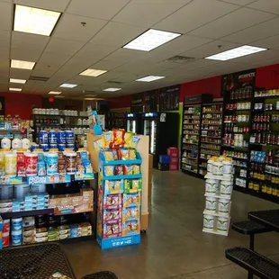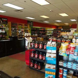 What a great, large nutrition store!First off.. NO they don't do shakes like One Stop - so stop asking! But... It's a very spacious nutrition store with knowledgable people - they carry everything you need and definitely a wider variety of things (pre-workouts, bars, EVEN A MEAL PREP FRIDGE!) than other nutrition stores, especially One Stop.So conveniently located near the EOS! I can stop by and get an electrolyte beverage after the stairmaster beats me up! Everybody has been great to me here every time I stop by as well.Love this place!