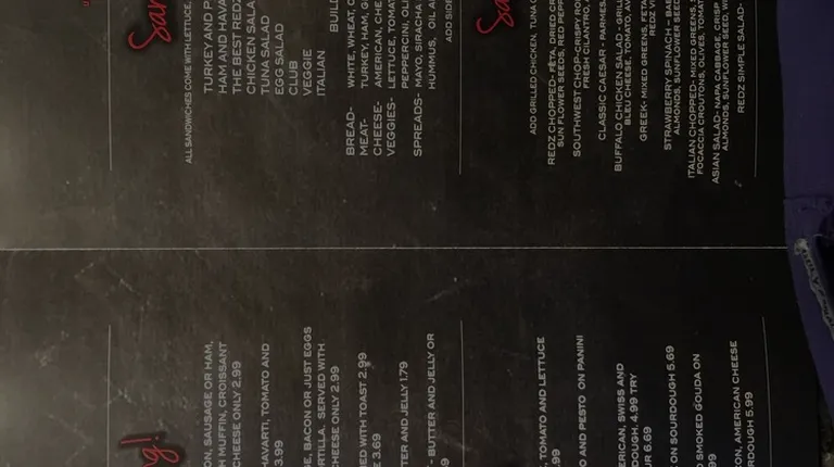 I work in a office as the same building as Redz, when they opened I had very high hopes for the cafe. Before, the cafe use to be under a different management. Now that Redz moved in, the renovations were amazing, very chic look. Very optimistic about the grand opening, my first meal I ordered was a grilled cheese. I mean nothing can go wrong with a grilled cheese. But upon receiving my order, I was very disappointed of the quantity & quality of the grilled cheese. There was burnt, black crust bits all over my sandwich, I didn't send it back simply because I had too much to do in my work load. It came with a chili soup which was very salty. I only ate about a quarter of my sandwich before throwing it away. Not only was the sandwich and soup were a disappointment, but the price of the whole meal. It wasn't worth more than $10.I thought I was done with the cafe but I have to admit I ended up going back for different treats. The prices are outrageous! I decided to try a Cobb salad one day and I fell in love with it. I ordered it about 3 different times. The fourth time they had made it fresh for me. High hopes turned right around. As I was only a quarter of the way of my salad, I noticed the bottom of my box was full of water. I once again threw the salad out. This place is a hit or miss, prices are too high. I will not be ordering a grilled cheese or salad again.