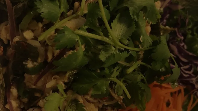 Beautifully colored larb salad. Ground chicken, lime, mint, onions, crunched up sesame seeds. Can add rice if needed.