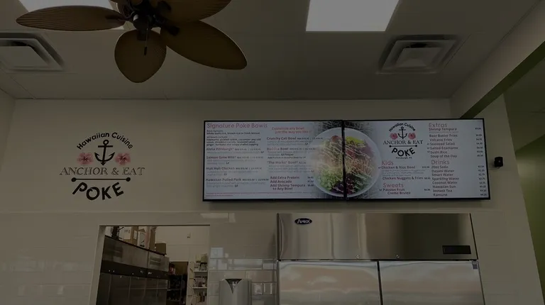 Anchor & Eat is a casual restaurant that serves Hawaiian poke bowls that customers may choose to customize. As of February 2023, this restaurant's menu lists poke bowls that contain proteins such as tuna, salmon, chicken, pulled pork, and lump crab. The bases are white rice, brown rice, or lettuce. Other possible ingredients are edamame, pickled radish, cucumber, red onion, shredded carrots, seaweed salad, ginger, furikake, shallot, etcetera. Sides include shrimp tempura, beer-batter fries, seaweed salad, edamame, etcetera. My husband and I each ordered a poke bowl and a beverage, and we shared a side. I rate the customer service as 5 stars. The employee spoke very nicely to us when we were ordering, and after we were done eating, she collected our bowls and told us to have a nice day. Here are my reviews for the foods:Hawaiian Pulled Pork - $15.50 for regular size - 4 stars - I enjoyed the taste of the pulled pork, brown rice, pineapple, edamame, cucumbers, carrots, jalapeños, and miso-ginger vinaigrette. The ingredients were very fresh. Huli Huli Chicken - $15.50 for regular size plus $5 for shrimp tempura - 4 stars - My husband ate this poke bowl. It contained white rice, chicken, edamame, cucumber, avocado, scallion, carrot, wakame, siracha, and crispy shallot. He described the taste as "good."Volcano fries - 4.5 stars - $5 - These French fries were the wider/steak type. Sriracha mayo and eel sauce were drizzled on top. The fries were perfectly crispy, and we enjoyed the taste of the sauces.Hawaiian Sun - 5 stars - $6.50 for two - I drank the Pineapple Orange flavor, and my husband drank the Green Tea Apple. (The restaurant also sells other flavors of Hawaiian Sun juice drinks, Coke sodas, cold teas, and waters.)Price - 3.5 stars - I know that the economy is experiencing a lot of inflation, so the costs of foods are very high. My husband described the prices of this restaurant as "ridiculous," although based on other reviewers' photos of the restaurant's menu, the restaurant apparently has lowered their prices from several months ago.