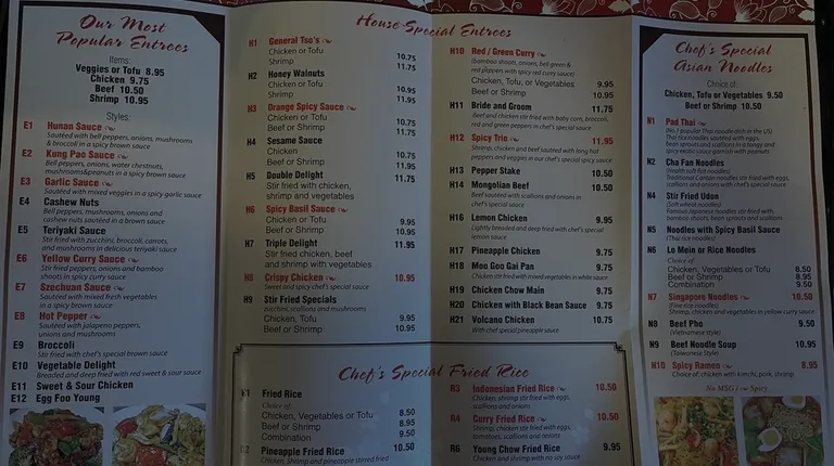 a menu for a chinese restaurant