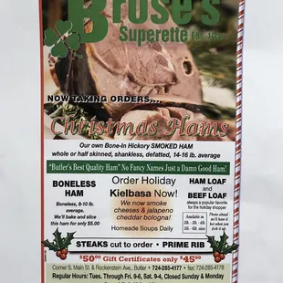 We need pride in our homemade salads and fresh cut meat. We have a variety of smoked meats and cheeses!! One of Butler's hidden gems!!