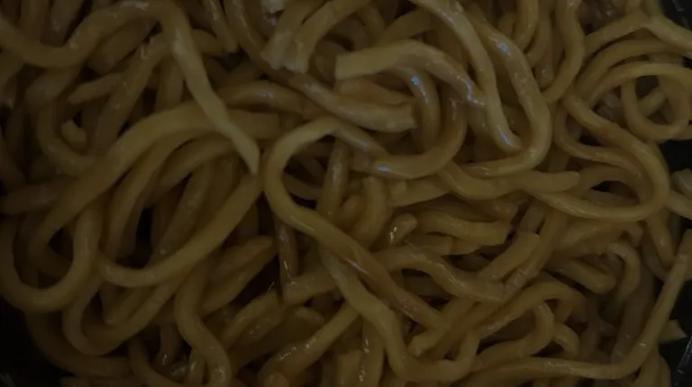 a plate of noodles with shrimp and vegetables