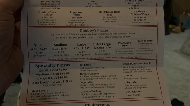 Just visited this Restaurant tonight. Had heard a lot of reviews about their Pizza tasting like a old local favorite. If you're local to the area, the pizza in reference is Augustine's Pizza. It's a small restaurant in a small town with BIG flavor!We ordered a large Pepperoni with extra Cheese and Chubby Bites. The Chubby Bites are a Local Sausage (Joseph's) and deep fried. These were wonderful!!! The batter/breading was phenomenal. The Pizza came out shortly after and didn't disappoint. It came with sliced cheese instead of shredded. We truly loved the sliced cheese over shredded. I was impressed with the classic stringy cheese as we tried to cut it and it stretched from the pan all the way to our plates. The sauce definitely reminded us Augustine's Pizza. The crust was light and crispy with very subtle sweetness. The staff was amazing and very friendly. This was our first time here and the manager made us feel like he had known us a long time. They have a large enough menu that we will definitely be back to try the next items.