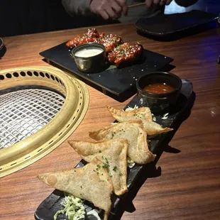 We had a great dinner with friends on Saturday celebrating Valentine's Day. We sat at a grill table and had reservations. We ordered the rangoon and wings as appetizers. I really loved both! My husband and I orders for dinner shrimp, bulgogi, and asparagus. My favorite by far was the shrimp. I also love the sauce, rice, and additional items they bring to the table for the grill. I left totally full but not stuffed...which is always wonderful! We would love to go back and sit at a normal table and get some of the different dinner options.