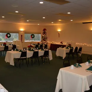 The Grandview Room is set for a Christmas Party.