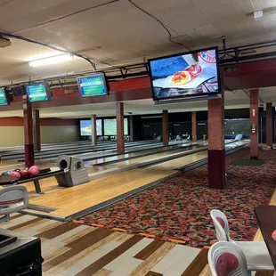 I had gone bowling here tonight and had a blast. I was on lane 12, and went with my friend. The food was actually really good and the staff was. Just very friendly. It feels like a rare but good find, and I'm glad I went. Also, the deal on Thursdays is impossible to beat. We played for games, ¢.25 cents a game. I spent $13.25 total, shoes included.