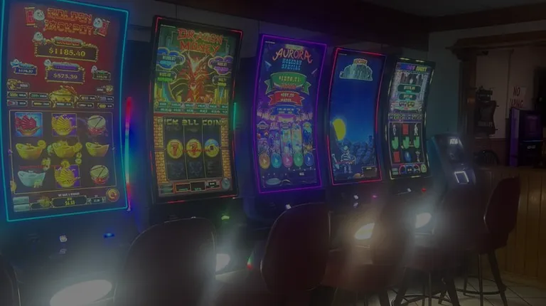 a row of chairs at the bar
