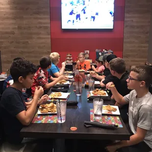 Brought my family here looking forward to a fun evening around 5:30 on Sunday evening. After waiting at the host stand for a few minutes as several employees and supervisors passed by us a line of people grew who were waiting to be seated. Not one person looked up to greet us. After a couple more minutes, we were seated. We waited about 10 more minutes at the table and received no attention from the waitstaff, at which point we began looking for an alternative place to go. We left around 6 and enjoyed a nice dinner together at Texas Roadhouse -with attentive staff!