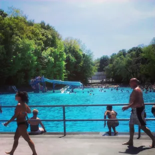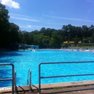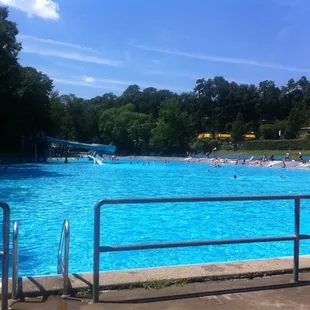 Although this pool is a lot cheaper for residents (and free for senior citizens in Dormont like my grandma) there are still people all over Pittsburgh who don't even live in Dormont but will pay extra to get passes to go to this pool because they prefer it that much more than any other pool in the Pittsburgh area. Not only is this pool the biggest pool in the city but it is (from what I heard) the biggest pool in the state of PA. With that said, there is usually plenty of space to swim as long as you are not going on the weekends when it is super hot. They also really did the best they could with staffing considering the fact that there is a prominent lifeguard shortage in Pittsburgh.I like it because of the scenic view with the trees all around it, the fact that they allow you to use rafts everywhere in the pool except for the small section of the side for people who do laps, and how they play music on the loud speakers all day long. They also have a lot of opportunities to socialize here with other people because of how many people can fit in this pool although you also don't need to.It is also a great pool if you have children. The child section of the pool takes up about 75% of the surface area and it allows you to gradually build up your tolerance to the water temperature as it has water that goes up to every level of your body. They have a very slow moving slide, a small duck slide for very little babies, a volleyball net and raining mushroom.