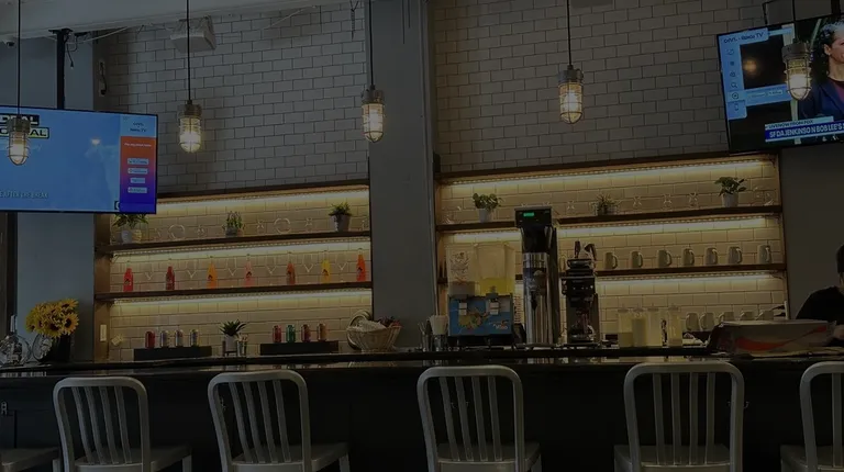 the entrance to a restaurant