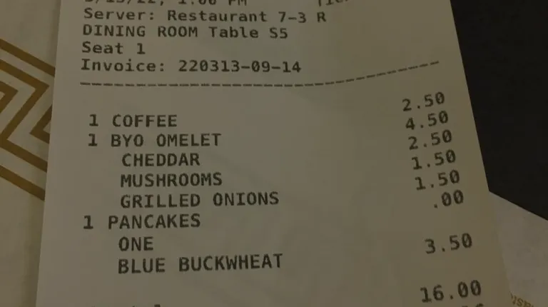 Visiting some friends and found this place. Nice quiet restaurant. It is a Sunday and there is a waiting list.But I came alone, so they were able to seat me at the counter. I ordered right away and the food came quick. I was able to order just one pancake which was nice.And a build your own omelette. The service was excellent and the food was good and cooked perfect. Really this should be a 5 STAR REVIEW. The only reason I am giving it 4 STARS is because I don't want to mislead people. The food is good and much better than going to IHOP but it's not a super high end place. The pancake was good. I got a Buckwheat with Blueberries. The omelette was sautéed mushrooms and onions with cheddar. The omelette was about $10.00. it did not come with home fries, but it came with toast and since I got a pancake too. That was enough carbs for me. Very good portion of mushrooms and onions in it. See Pictures.FYI: The pictures of the menu is old and prices have gone up. Still a good meal for a good price.