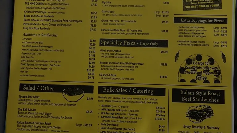 The food @ Gina's...AMAZING! I've been eating there for years and never had anything bad there! Everything is fresh and homemade, every one of their soups (especially the greens & beans), the meatballs & roast beef sandwiches, the salads and pizzas are delicious! Highly recommend!