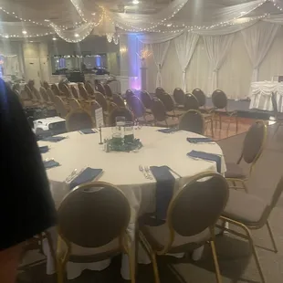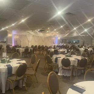 My office hold their Christmas party here every year. I have gone to it the last 5 or so years. It is a medium sized venue with a dance floor and bar. They have a coat check when you walk in which is very nice. We always have stuffed chicken, which I love! It is not dry and the gravy on it is yummy. We also have roast beef for the other meat but it's not something I have tried. Besides those two things we have veggies, mashed potatoes, and baked ziti. Nothing super special but it's not bad. I really like their Italian dressing! It's super tangy. Service is always very nice, friendly, and fast. They pay attention to the tables and clear off plates and cups as soon as possible with I think is nice! It's always very clean. All in all it is a very nice venue and is well taken care of. The food is good, service is friendly, and it's clean! Upon forward to the Christmas party here every year!