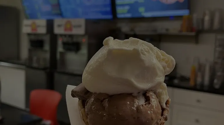 We really wanted to support small/local and we were so excited to stop in for our first visit. My first impression was that the shop could have been cleaner. Then, the staff was not friendly at all during our transaction. I'm not sure if it was because we were there 30 min before close on a Friday? After we paid, the man behind the counter gave my husband a waffle cone that was burnt / charred to a crisp. I thought it was covered in dark chocolate at first!! but it was just severely overcooked. I asked if it tasted how it looked and he unfortunately said yes :/ .