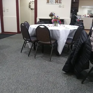Extremely polite wait staff!We came for a church luncheon and I have nothing bad to say. It is a smaller room but it did hold a lot of people. The food was excellent and it was so great that they offered chicken finger and French fry basket for the kids.