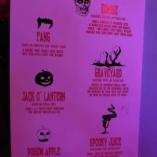 The vampire teeth and witch finger that come with your drink make for a fun time!