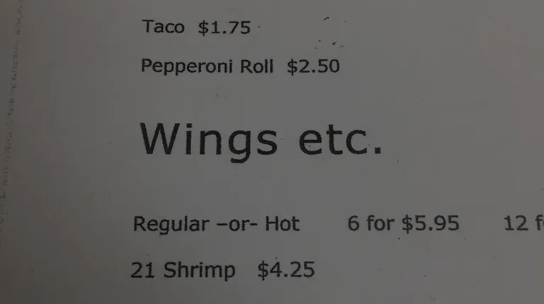 a menu for wings etc