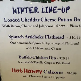 We decided to take a drive one evening and looking for a spit to eat the parking lot loomed packed which is usually a good sign so we stopped. Glad we did because it was great. There is a small bar, inside dining and a patio. Then menu has a little bit of everything appetizers, wings, sandwiches, pizza, pasta. They also have seasonal specials and daily specials. The Buffalo chicken dip with pizza dough is amazing, the wings were tasty and the calzone was large and you get red or white sauce if build your own. We will be back to try the pizza next time.