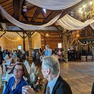 Beautiful venue in a private, farm setting. If you have over 100 guests, it can seem a bit cramped indoors. The line for the bar was really long and we ended up bailing. Same issue with the catering and appetizers. The catering could've run more efficiently. The wedding was behind schedule as well. The venue itself is really nice as a restored barn. There were Adirondack chairs and a campfire available in the evenings, it was nice to walk around the pond on site as well. Also, there's hardly any cell phone service here, The venue was great, the services could've been better, however.