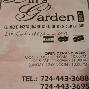 Very quality food for dine in and take outQuick service, good prices and good foodBeen consistently getting Lin's garden for 10+ years and continue to do soBig fan of the general Tsos, lo mein, fried dumplings, and wonton soup