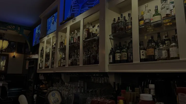 a bar with a variety of liquors