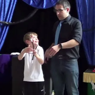 I cannot say enough positive things about Magic in the Run! Not only are the kids mesmerized by the tricks (they are quite amazing!) but the jokes are absolutely hilarious... for both the kids and adults alike! It's kind of like watching a Disney movie, the jokes are on two levels which makes it super-entertaining for the parents as well. if you're looking for terrific entertainment, especially for a child's birthday party, Magic on the Run is definitely a great choice. Highly recommended!