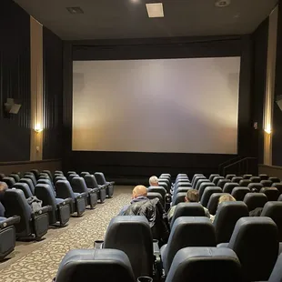 Came for a movie showing in auditorium 2 on a Saturday evening. I purchased our tickets online in advance and only had to show them to the employee at the counter on arrival. The theatre is smaller and has some historic charm. The lobby is clean, bright, and kind of narrow. They have a few movie posters lining the walls and a fabric curtain separating the public area from the bar and auditoriums. The bar is located next to the concession stand and had several cocktails available along with a decent selection of liquors at a fair price. The concession stand was as expected with a little more of an inflated price point; a bottle of water cost me $4.50. The auditorium we were in was small and clean and only a little bit outdated. The chairs were cushioned, but some were ripping. The bathrooms were small and old, but clean. Any staff that I interacted with were very friendly and welcoming. We were greeted both on the way in and on the way out.