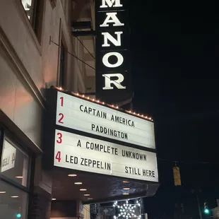 The Manor Theatre is such a gem, located in the heart of a wonderful, diverse neighborhood. There's a charming cafe with typical theatre food and snacks: candy, pretzels, popcorn, hot dogs. It's pricey, but that's pretty typical for any theatre. They also serve chicken tenders but we didn't try them. There's also a little bar if you'd prefer wine, beer or a cocktail. There are four small auditoriums that allow for a more intimate viewing experience. The auditorium, cafe and restroom were clean and well maintained.