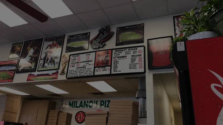 Milano makes good pizza. Classic NY style crust and sauce. Prices are on par with their competitors and location is okay. Their non-pizza food is nothing to write home about however. The sandwiches are a little underwhelming and their salads are terrible. I ordered a grilled chicken salad and it was terrible. A few slices of grilled chicken on a small handful of iceberg. Not much else. Way over priced. Pizza good.......salads terrible.