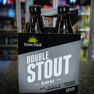 four bottles of beer on a counter