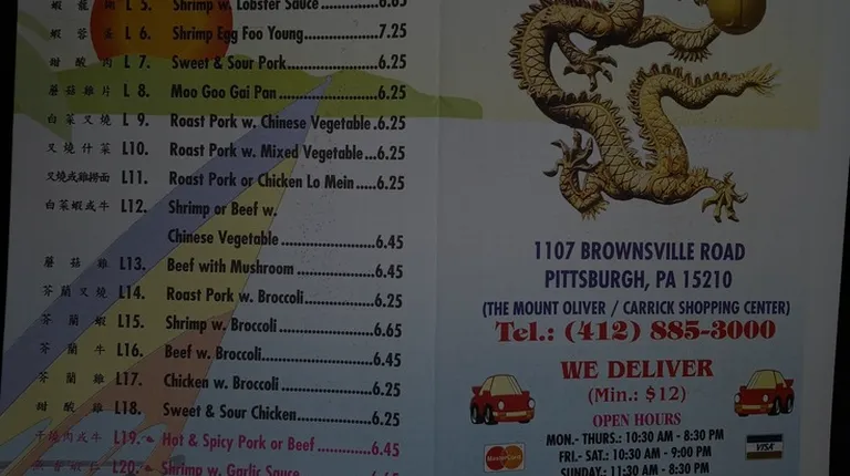 This place is right next door to the Carrick Shop n Save if anyone is ever looking for it. I never really go inside, just mostly have had delivery. They deliver with a minimum $10 order. My orders have always been precise and timely. It's a normal decent tasting Chinese restaurant. The crab Rangoons are very tasty here though. You really can't go wrong with the prices and they always honor the coupons on the front of the menu when you mention them. I'm not the most adventurous when it comes to Chinese food, but the General Tso's, Sweet & Sour Chicken & the Lo Mein are always good.