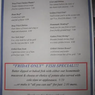 Best breakfast in town. We always get fast, awesome service every time. Breakfast is big and filling for a cheap price.Their Friday fish sandwiches are huge and delicious!