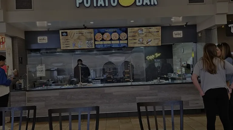 4.5 stars. Potato Bar restaurant is located in the food court of Ross Park Mall. Of course, its menu focuses on potatoes in various forms--for example, fry cone/boat (French fries with dipping sauce), crunchies cone/boat (tater puffs/tots with dipping sauce), tornado fry (spiral, fried potato on a stick), potato salads (classic and Greek), fries with benefits (loaded fries and poutine), and spuds (baked potatoes with various toppings). I believe that customers can even customize their own build-your-own entree from a selection of bases, toppings, proteins, and sauces. The menu also lists mozzarella sticks and fountain drinks. I bought lunch from this restaurant once. The employees promptly and courteously served me. The tornado fry (4.5 stars) reminded me of potato chips but were softer and connected to each other on a stick. They tasted very good but could have used slightly less salt. The poutine gravy fries (4.5 stars) contained mozzarella, gravy, jalapeños, and parsley. I thought that they were some of the best poutine fries that I have tasted outside of Canada. I also bought a small fountain drink. The total price for my meal was $16 plus tax and tip.