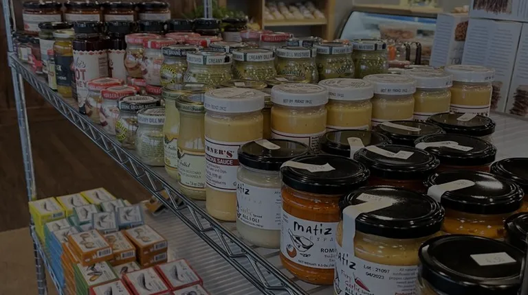 shelves of canned food in a store