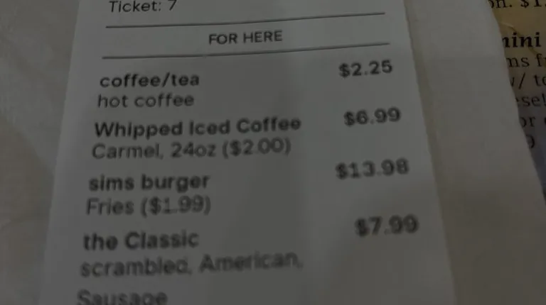 Went to Sims for the first time today for lunch with a dear friend. There is a breakfast, lunch and kids menus with a lot of options. Additionally the beverage selection is nice which includes whipped iced coffees and Tractor juices - yum! Thank goodness for this great new place - it was deeeelish!