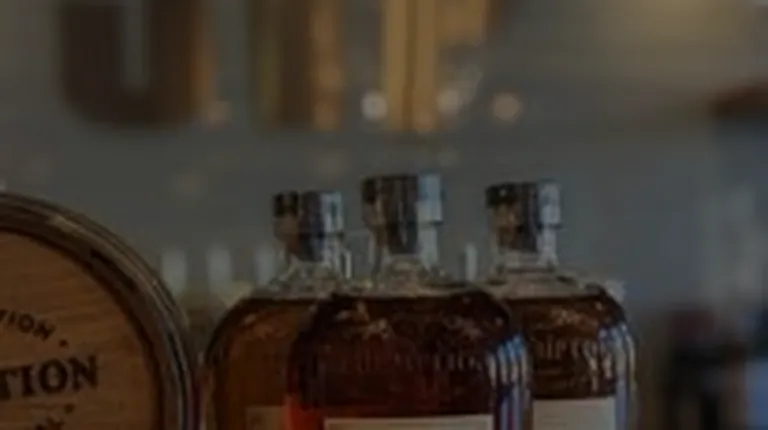 a glass of whiskey on a bar