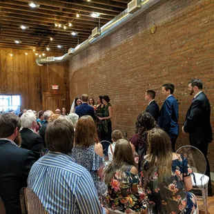 A wonderful new wedding and event space. They worked really hard to make sure that everything went perfectly. The space itself is supposed to be a backdrop for whatever you want, a blank slate, so to speak, for you to decorate however you wish.The walls are exposed brick, so there's kind of a rugged and historic look. The staff was very professional and friendly, and I must give them credit for a very well run event. They let you choose your own caterer and beverage manager, but they can provide a sound system, chairs, tables, and staffing. I was a bit surprised there was a $150 cleaning fee, I figured that would be rolled into the rental fee.