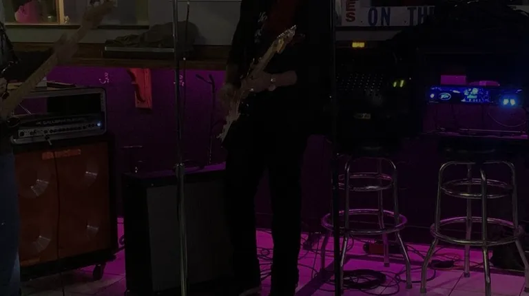 a man playing guitar in a bar