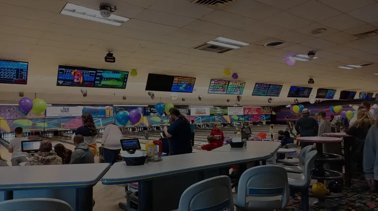 Well we didn't get to bowl, it was too packed. A lot of birthday parties going on and to be truthful it was nice to see it busy like this.Lots of families and little kids. It was good really good to see it that way!!It was small and narrow, expensive $30 per lane per hour and $5 shoe rental. I thought it was pretty expensive....but I loved the tables near the ball return. I liked the layout of the Bowling alley
