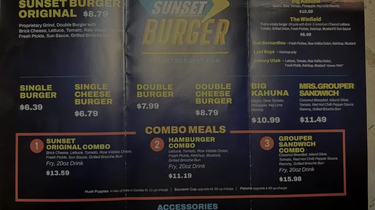 Welcome to the neighborhood! Sunset burger is a nice addition to the Park Place Plaza in Washington. The SoCal vibe and decor is unique for a restaurant around here, which adds a nice touch. We were greeted as soon as we walked in from the friendly staff. You order at the counter. They call your number, but they also deliver to your table which is nice. The burgers were really great. I will say, the patties are quite thin so I'm going to order a double next time. The fresh cut fries and the hush puppies were served nice and hot... fresh out of the fryer! They also have $5 milkshakes but it's just a flavored syrup mixed with vanilla. I'm definitely looking forward to going back and trying more menu items, especially the grouper sandwich! I hope Sunset Burger does well and sticks around!