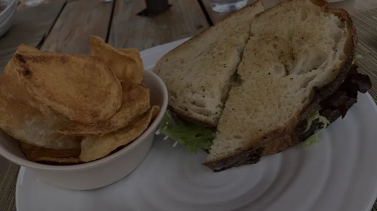 Beautiful view from the patio. Restaurant was not crowded at all. Service was good but slow, especially since we were pretty much the only diners. We all ordered soup. At least ten minutes later they came out to tell us they were out of both of their soups. You would think they'd know that right away when the order was put in. Food was good. I had turkey wrap with side salad. Balsamic dressing was delicious and wrap was tasty. Husband had crab grilled cheese with fries. Sandwich was very tasty but not hot which it should've been. Fries were good but also not hot. Portions were decent although friend had spinach salad with chicken and it seemed quite small. Prices were average ($13-18 for sandwiches). Overall nice lunch and relaxing atmosphere.