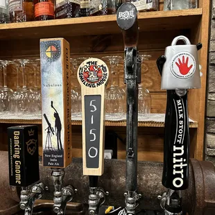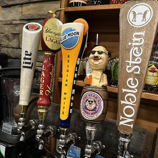 a variety of beer taps