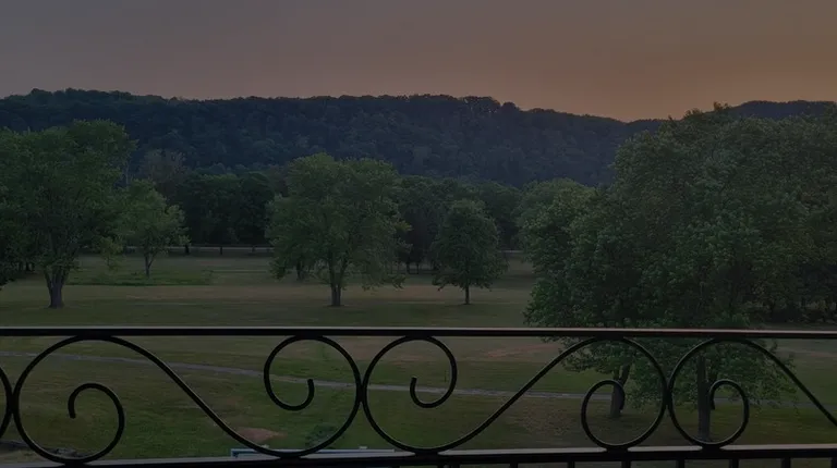 Outdoor Seating on the covered balcony with beautiful views of the golf course and the river in the distance