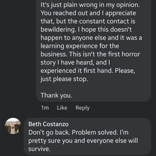 This is a long one, so pick a seat and grab a coffee. I am not one to keep pestering a business, and I am not one to bash local restaurants, but the experience I had here along with the interactions that followed after I had left a Google review has been absolutely ridiculous to the point of the mangers and owners contacting other members of my family. Here is the original post to Google:hate leaving bad reviews, especially for local restaurants... But.. I had to.Two days ago I made a reservation for our engagement anniversary. I wanted to treat my fiance to a fantastic dinner, and I had been wanting to try this place out for a while.We arrived and was seated immediately. We were given menus and that was it. We didn't get seen, or even were asked for drinks while we waited. Everyone else was taken care of hand and foot while we quietly waited. After about 30 minutes we decided maybe they were too busy, and we didn't want to have our night ruined, so we started to get up to leave.Of course that's when someone came up and asked if we were waited on and we politely told the waitress that we were going to another restaurant. She pleaded we stay and that they would make it right on the bill. I assured the waitress that it wasn't her fault as from what I could tell, it wasn't even her area of the restaurant. I commend her for trying to make it right and I hope she didn't get in trouble.I see this as a manager's problem as they need to see the floor and notice why people aren't being served. I understand nights get busy, thats why I gave them a chance even though I had a reservation, we politely waited for 30 min before leaving.I would have given a better rating, but as we left, a man by the door looked back at the waitress and stated "They will be back don't worry". I just chuckled. If you're that smug, I definitely don't feel quite as bad leaving this review.I will say someone did try calling me from here, and I appreciate the reach out, but we were enjoying another fine meal by the time I got the call. Sorry it didn't work out tonight. Best of luck to the business."Since then, I personally have been contacted many times about these issues along with the mangers and owners actually messaging me on my private social media accounts, and phone numbers. I politely asked them to please leave me alone as it was my right to leave a public review. On Feb 17th 2024, my father calls me saying that he got a screenshot of my review from what I understand is the Co Owner of the restaurant. I can absolutely see that they are now trying at every angle to get me to take down this review. It is ridiculous that an establishment will go these lengths to cover their tracks. In the same day, I was named in their Facebook posts along with another bad reviewer that had a similar experience. I don't know what else to do at this point. I want my life back, I want my family left alone. All this is over a bad review for a bad experience I had. What do I need to do? Call authorities? Or take to local news channels? Honestly that is so petty to do and quite frankly it isn't worth my time because this whole situation is ridiculous... But if constant harassment keeps happening, you bet that I will take some sort of action to resolve this.