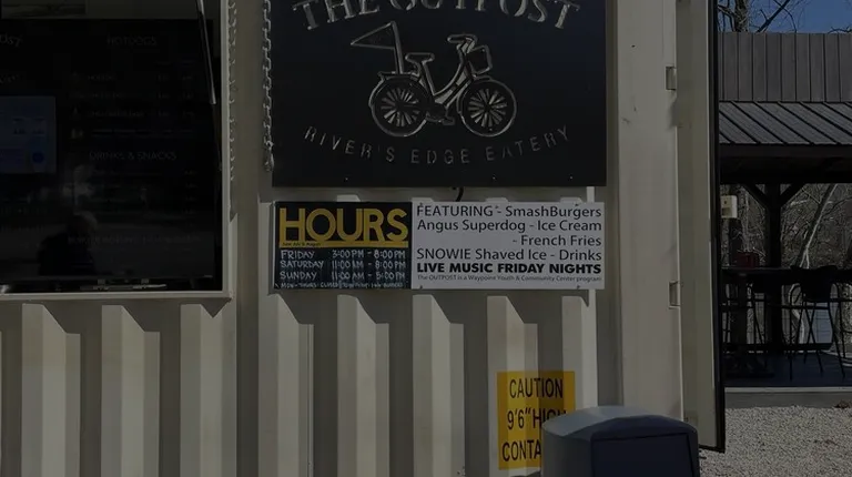 Absolutely a gem. You must stop by if you're biking or floating the river. You won't be disappointed. The smash burger is to die for. You can get some shaved ice to cool down. They're closed Tuesdays and Thursdays. Check them out on Facebook at "the Outpost Eatery"