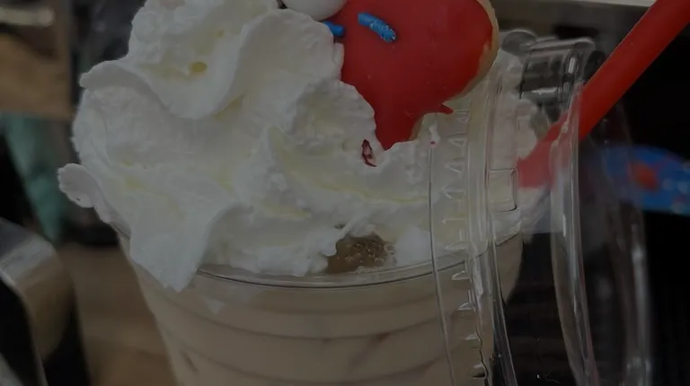 an iced coffee with whipped cream and chocolate
